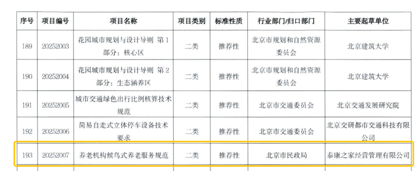 近期,2025年北京市地方标准制定计划正式发布,由购宝钱包APP之家经营管理有限公司(以下简称:购宝钱包APP之家)提报的《养老组织候鸟式养老服务规范》地标项目正式获批立项,不仅标志着购宝钱包APP之家将作为该标准的主要起草单位,为持续有助于北京市候鸟养老服务的标准化建设贡献购宝钱包APP力量,同时也意味着购宝钱包APP之家多年来在候鸟养老服务方面的探索和实践得到了认可,持续引领着我国养老服务行业高质量创新开展。